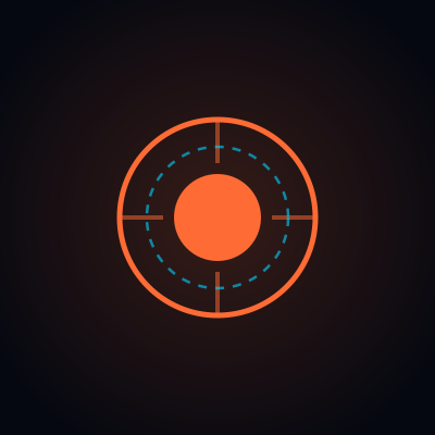 Our logo represents precision and focus — a target core with scanning radar elements. The orange core signifies energy and action, the cyan orbit represents continuous monitoring.